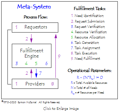On October 31, 2011 the human population reached 7.8 Billion and each one of us has Needs. In order to meet those needs, Tasks must be performed and Resources must be used. There are thousands of systems currently in place to help organize the work and manage the resources necessary to meet these needs. The Meta-System is a way to describe the functions and interactions of these many systems in a single, comprehensive design.